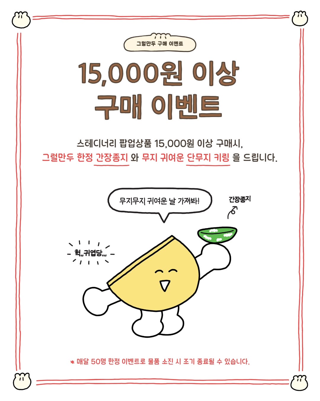 | 15,000원 이상 구매 고객 | 팝업 한정 간장종지와 귀여운 단무지 키링 증정 |